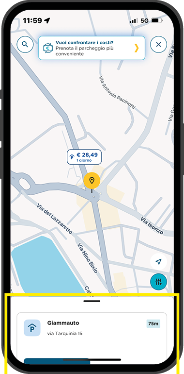 Per prenotare da app MooneyGo un parcheggio in struttura, segui questi semplici passaggi: