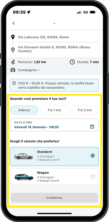 Seleziona la soluzione disponibile e imposta le tue preferenze. Clicca su Conferma.